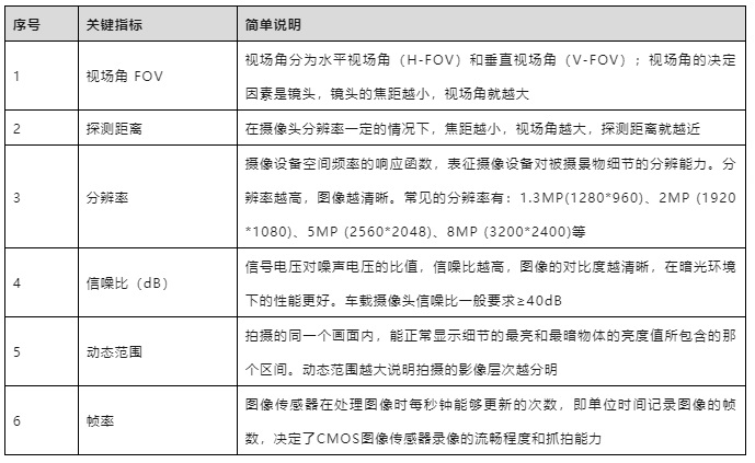圖表3. 車載攝像頭關(guān)鍵參考指標(biāo)(信息來源:《QCT/T 1128 汽車用攝像頭》、公開資料整理)