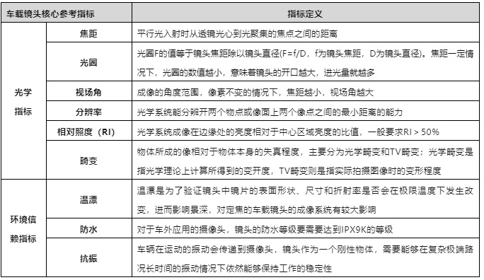 圖表18. 車(chē)載鏡頭核心參考指標(biāo)