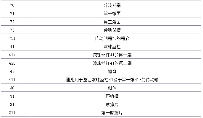 - 創(chuàng)新點:分流活塞設(shè)計成兩個端面,端面上設(shè)有分流凸起,能夠分流驅(qū)動力,優(yōu)化摩擦片受壓情況,避免因受力不均導(dǎo)致制動性能下降。3. 具體技術(shù)細(xì)節(jié)