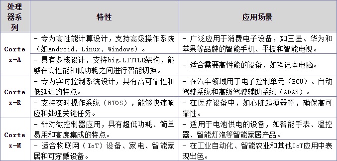 ARM的Cortex系列是ARM處理器產(chǎn)品線中最廣泛應(yīng)用的家族,針對(duì)不同的應(yīng)用場(chǎng)景,分為Cortex-A、Cortex-R和Cortex-M三大類,每一類都有各自的特點(diǎn)和目標(biāo)應(yīng)用。
