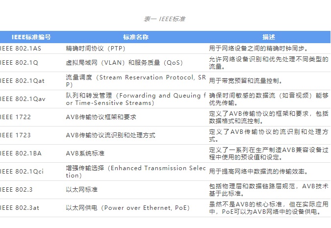 - 標(biāo)準(zhǔn)化優(yōu)勢(shì):由 IEEE 標(biāo)準(zhǔn)化協(xié)議(表一),這意味著任何供應(yīng)商都可以遵循標(biāo)準(zhǔn)實(shí)現(xiàn) AVB 堆棧。不同供應(yīng)商的不同芯片組都有現(xiàn)成的 AVB 堆??晒┻x擇,這極大地促進(jìn)了 AVB 技術(shù)在市場(chǎng)上的推廣和應(yīng)用,降低了技術(shù)門檻和開發(fā)成本。