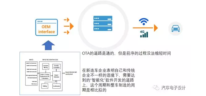 從這個意義上來看,這打破了原來既有的整車開閥制度,在G6到G5的開發(fā)階段很難有足夠的時間來軟件做完,使得G4的試驗認證的工作只能覆蓋基礎的這部分。事實上,越來越短的開發(fā)周期和越來越多的軟件開發(fā)工作,確實成了一組矛盾。這也是OTA如果實現(xiàn)在C端的更新,對于車企的很大的意義,它能拾遺補漏,幫助車企把問題進行修正,繞過了4S店的環(huán)節(jié)。