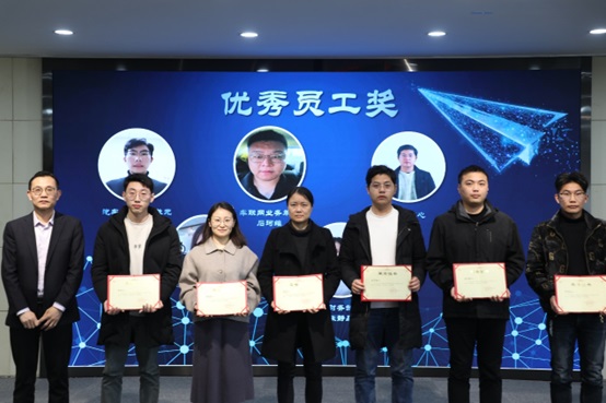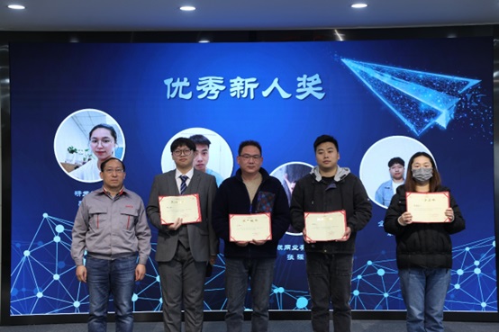 2022年度共評(píng)選出4名優(yōu)秀新人,6名優(yōu)秀員工,2個(gè)優(yōu)秀團(tuán)隊(duì),公司領(lǐng)導(dǎo)為獲獎(jiǎng)人員頒獎(jiǎng)。