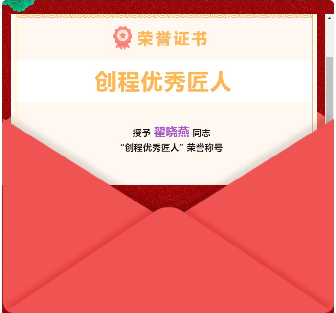 2023年第二季度評(píng)優(yōu) —— 創(chuàng)程優(yōu)秀匠人【翟曉燕】
