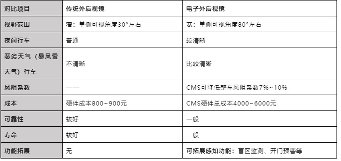 圖表8. 傳統(tǒng)外后視鏡與電子外后視鏡對(duì)比