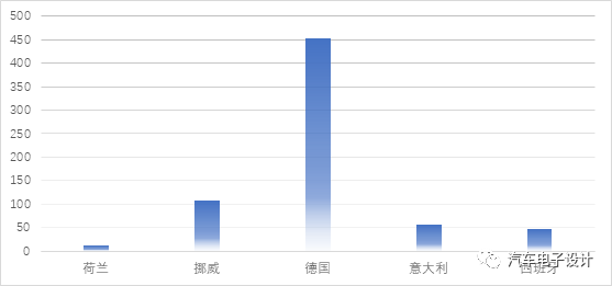 從新能源汽車的角度來看,德國、挪威、瑞典、法國和意大利的新能源汽車的銷售數(shù)量分別為36,903、8,309、6,893、14,654、6,254,西班牙稍少一些為1595臺(tái)。這個(gè)數(shù)據(jù)在去年年末沖量的基礎(chǔ)上開始回落,但是也是一個(gè)比較高的水平。