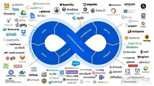 無(wú)論是縱向集成還是橫向集成,DevOps都需要通過(guò)工具鏈與持續(xù)集成、交付、反饋與優(yōu)化進(jìn)行端到端整合。如華為的軟件開(kāi)發(fā)云服務(wù), 基于二十幾年的研發(fā)實(shí)踐,融合DevOps理念方法,為企業(yè)提供一站式的云上開(kāi)發(fā)工具平臺(tái)。華為軟件開(kāi)發(fā)云提供項(xiàng)目管理、配置管理、代碼檢查、編譯構(gòu)建、測(cè)試、部署、發(fā)布等端到端地覆蓋全軟件生命周期的相關(guān)服務(wù)。類(lèi)似的DevOps 工具數(shù)不勝數(shù),常見(jiàn)的DevOps 生態(tài)圈工具如圖 5。