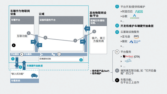 因此,這一套包含了抽象軟件層和基礎(chǔ)服務(wù)層(包括OS、車內(nèi)網(wǎng)絡(luò)、診斷等固件)在內(nèi)的基礎(chǔ)軟件平臺(tái)解決方案將成為車企需要把握的價(jià)值高地,也將成為供應(yīng)商的全新產(chǎn)品機(jī)遇。這些機(jī)遇不但包括軟件平臺(tái)本身以及端到端應(yīng)用軟件的提供,也包括相關(guān)的服務(wù)提供,如云服務(wù)、OTA服務(wù)等,如圖7。
