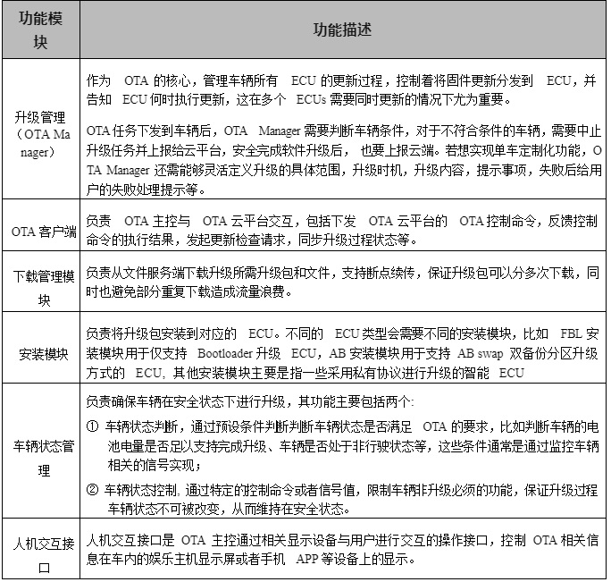 表 2-7 OTA 主控功能模塊
